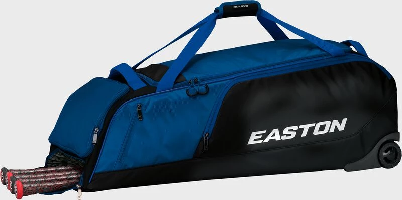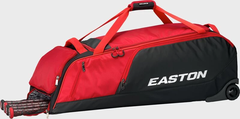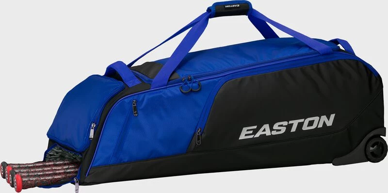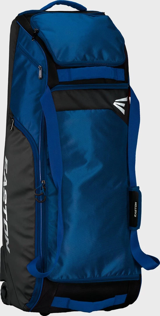 The Easton Dugout Wheeled Bag is a durable equipment wheeled bag, perfect for any player and their gear. A hard one-piece molded base provides stability and durability to the bottom of the bag. The padded bat compartment that can store and protect up to five bats, and an oversized large mouth opening with YKK zippers provides easy access into the main bag compartment. Roll up to games or practices through any terrain with the rugged inline wheels of the Dugout Wheeled bag.