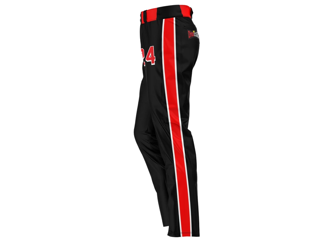 FULL CUSTOM SUBLIMATED PANTS, BELT LOPPS AND POCKET TRIM DOUBLE KNEES, TWO BACK POCKETS (*SIDE POCKETS OPTIONAL)