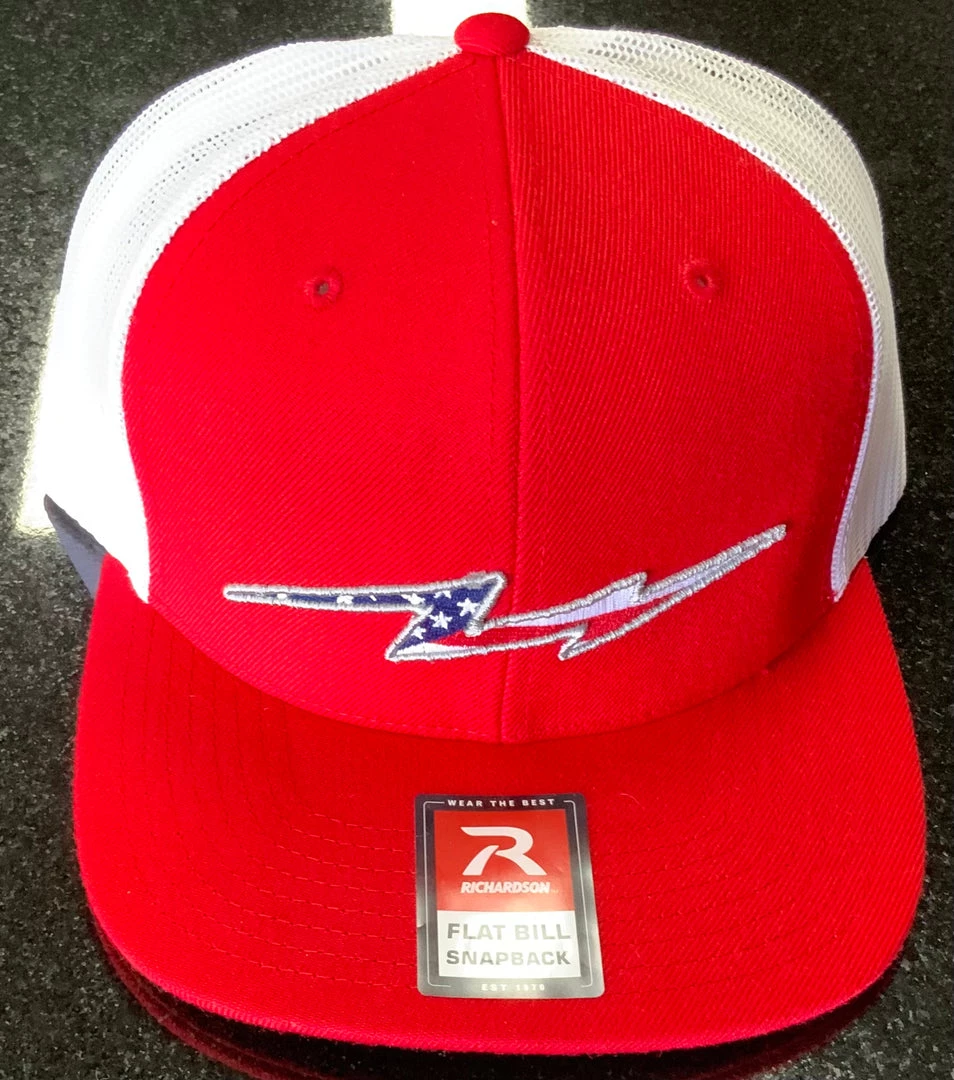 Pauer Sports Headwear Pauer Red/White Flag Bolt Logo Richardson 511