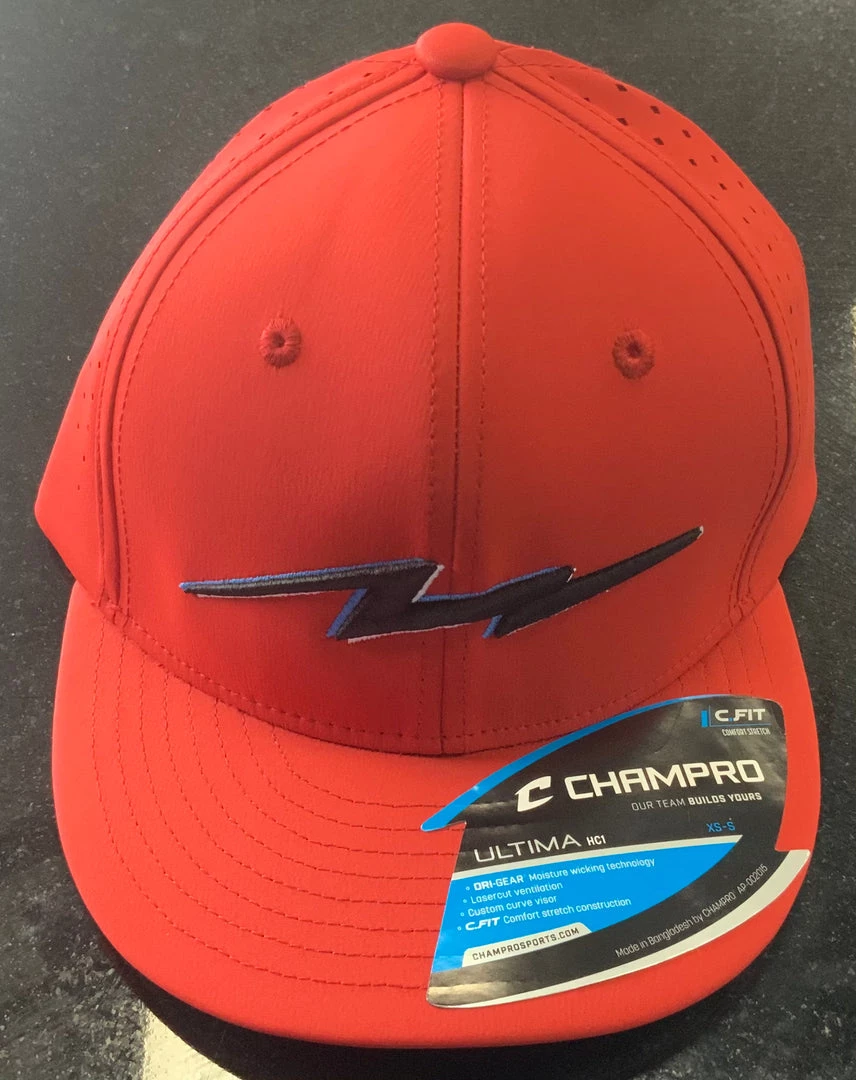 Pauer Sports Headwear Pauer SHOWTIME Bolt Ultima Fitted Cap – Red/Black/Columbia