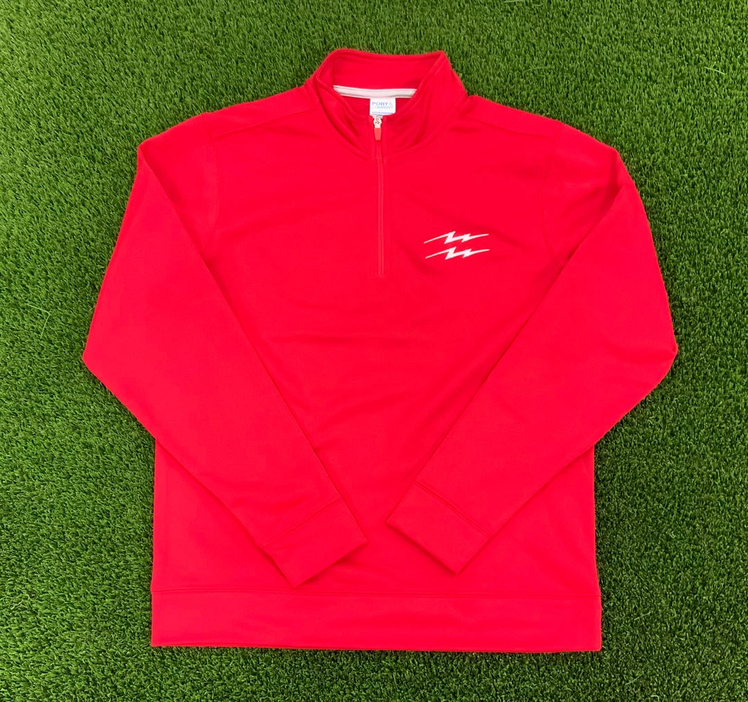 Cool, dry and colorfast, this quarter-zip pullover has a pill-resistant, snag-resistant face with a matte finish and brushed backing for comfort. It features double-knit construction, as well as a zippered pocket on the left sleeve and a chin guard.