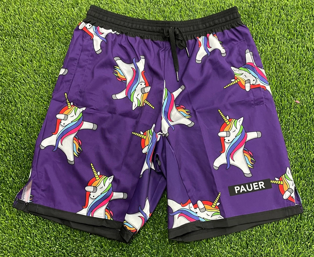 Pauer Sports Pauer Purple Dabbing Unicorn Graphic Shorts Men